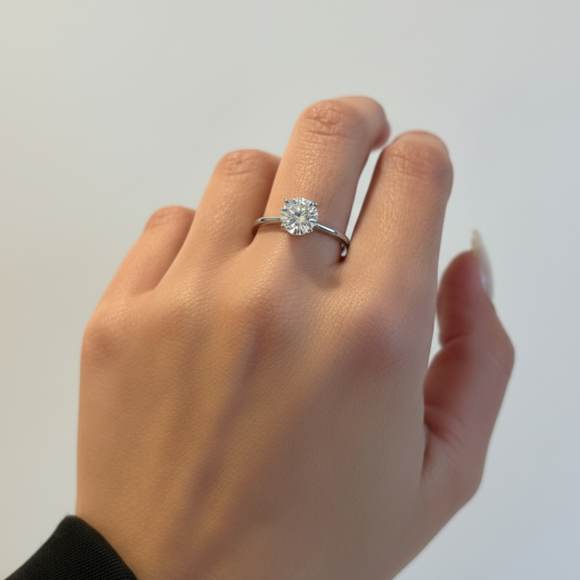 טבעת זהב משובצת זרקון עגול