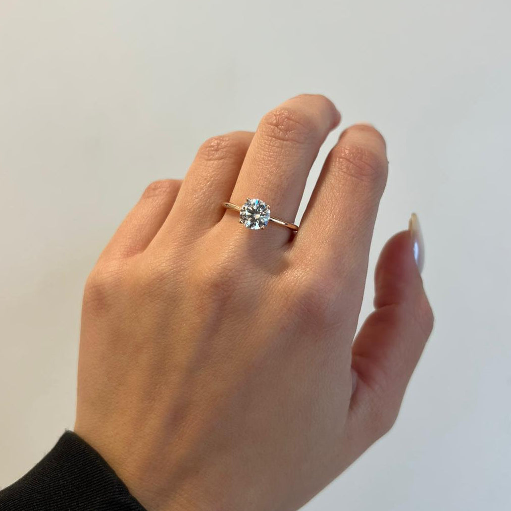 טבעת מזהב 14 קראט עם זרקון עגול.