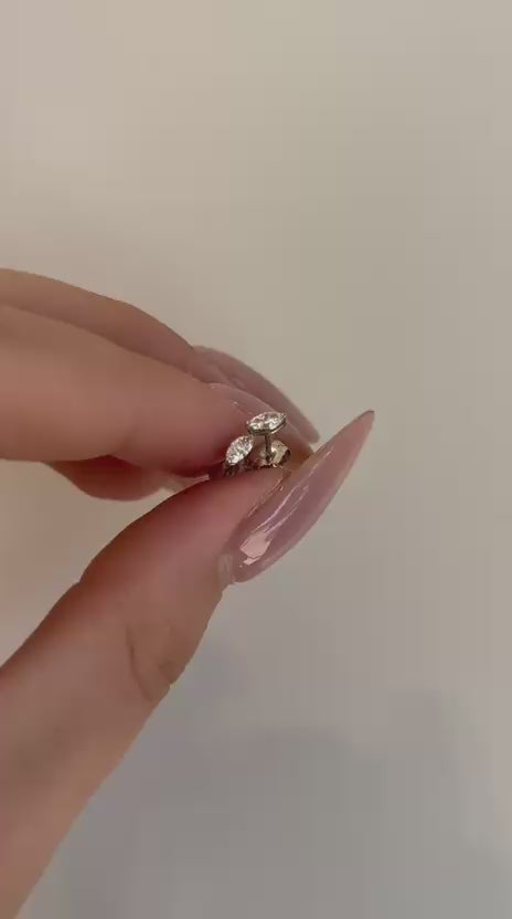 עגילי זהב 14 קרט משובצים יהלומים בצורת מרקיזה לפי המפרט שלהלן: