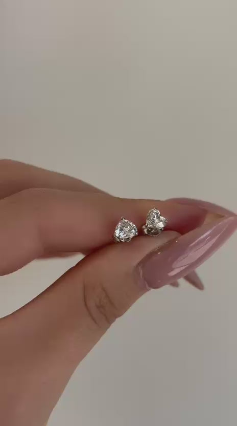 עגילי זהב 14 קרט עם 1 קראט יהלומי מעבדה בצורת לב