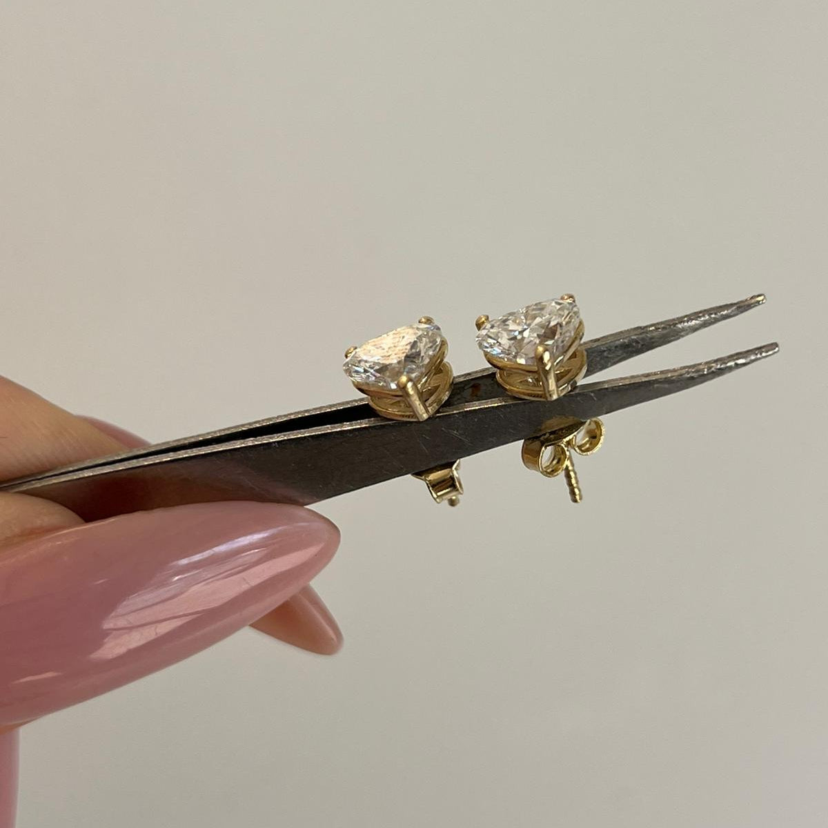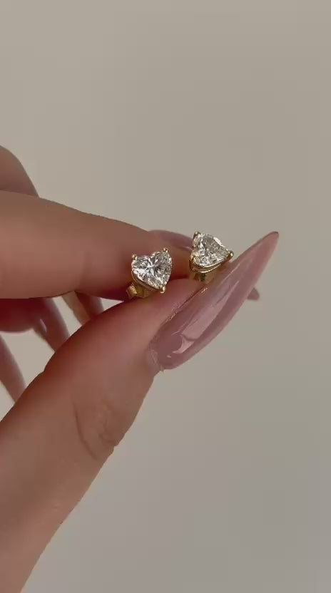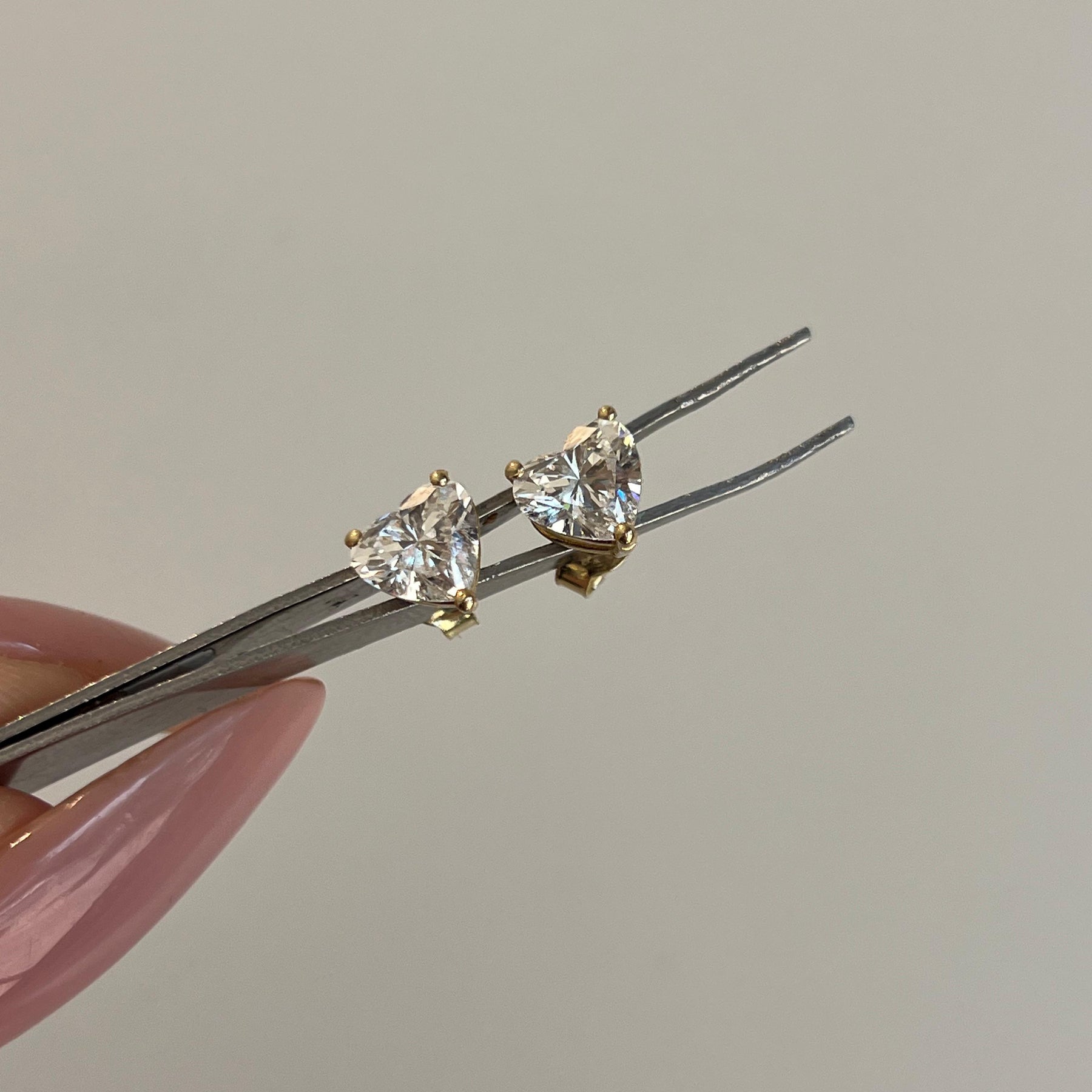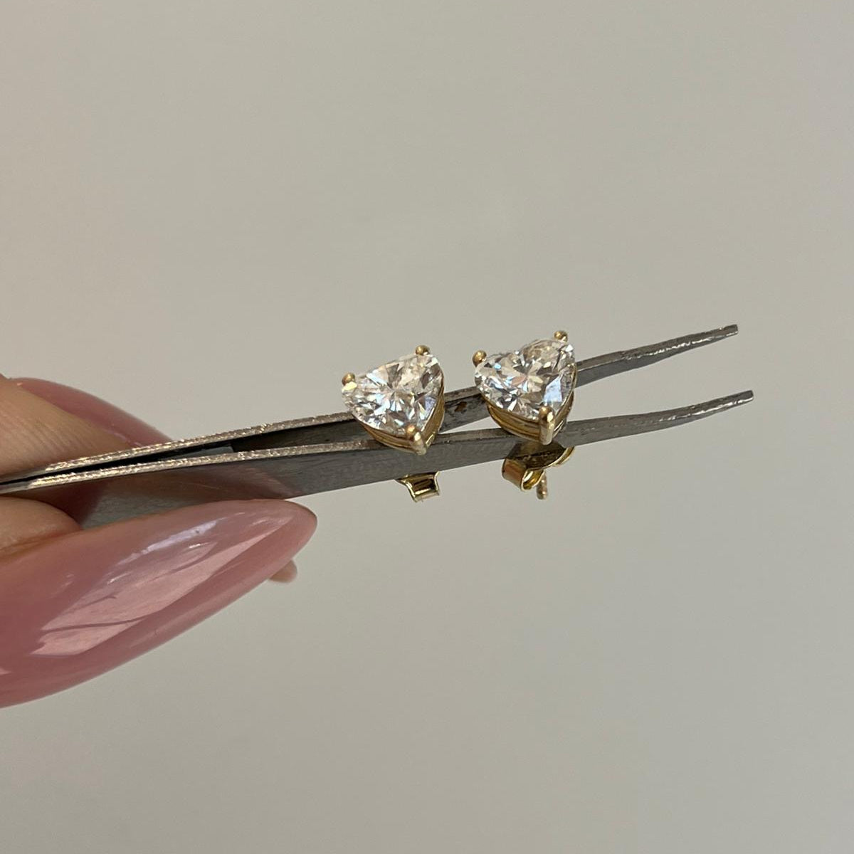 עגילי זהב 14 קרט משובצים יהלומים בצורת לב לפי המפרט שלהלן:
