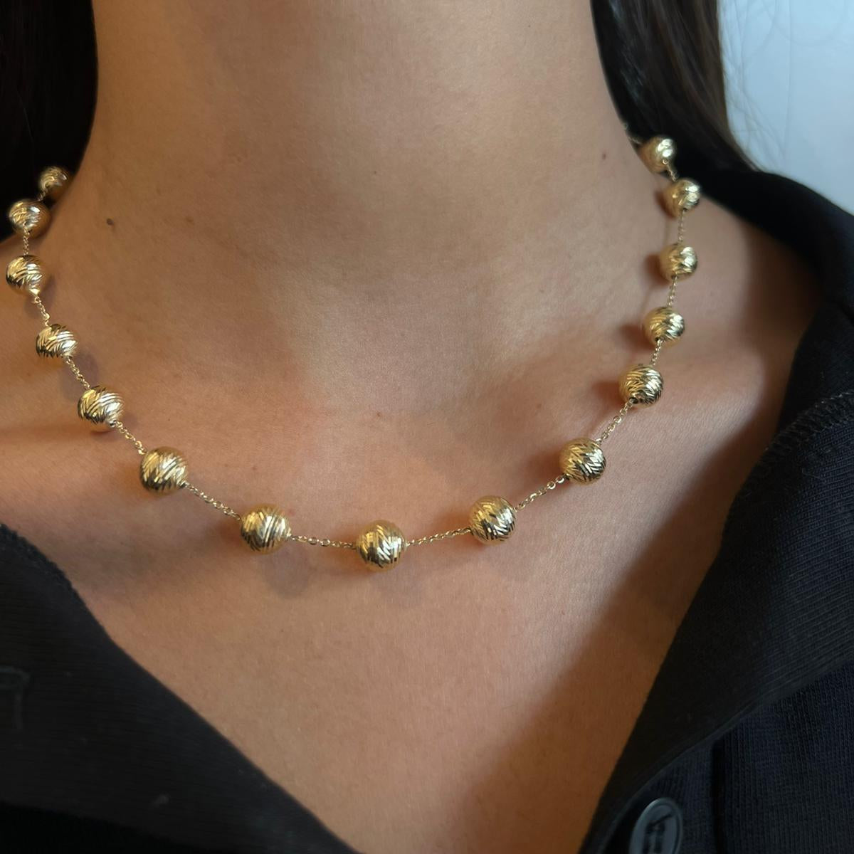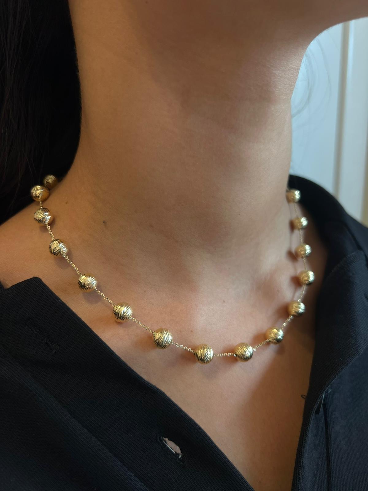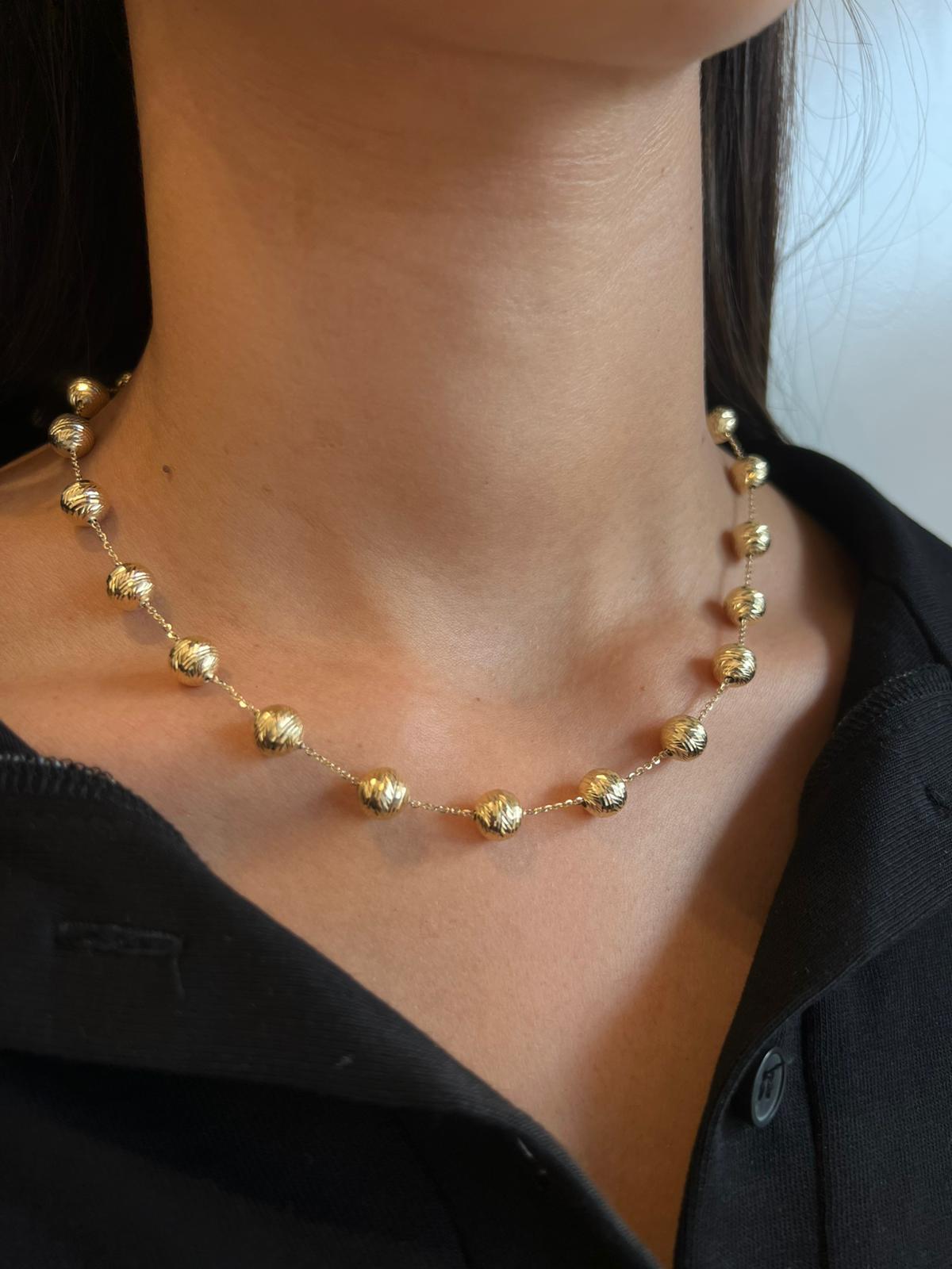 שרשרת חוליות מזהב 14 קראט עם כדוריות מזהב.