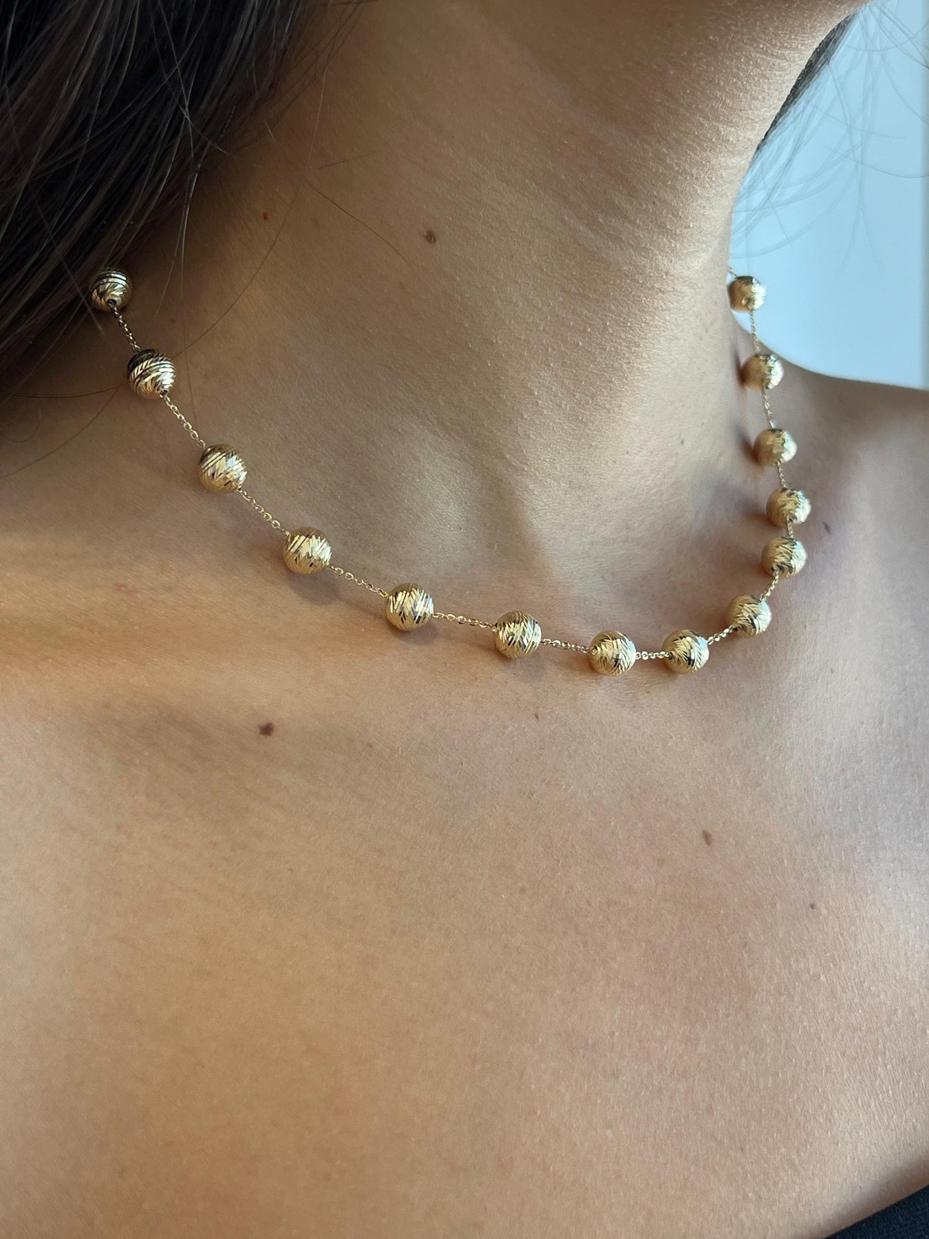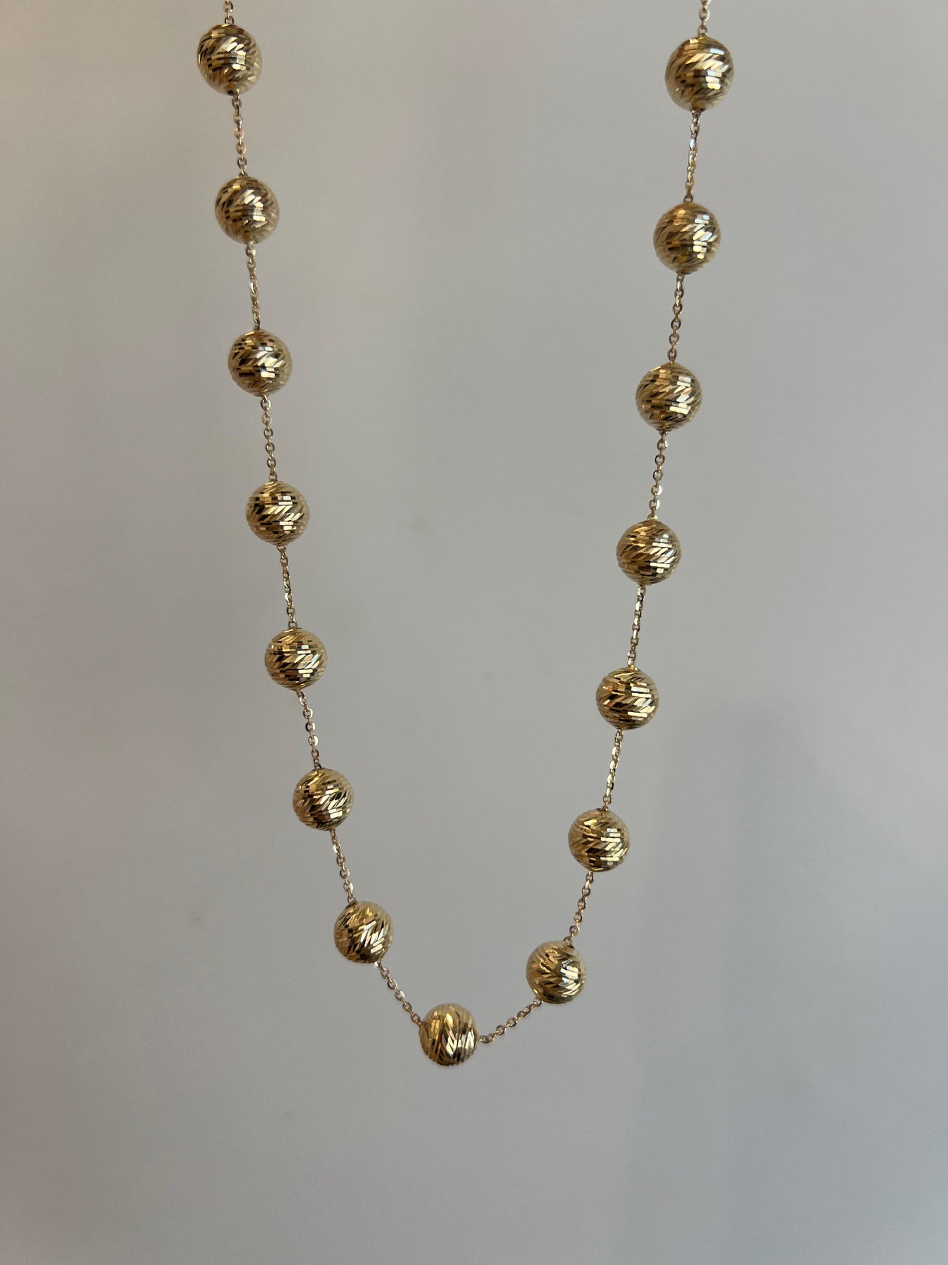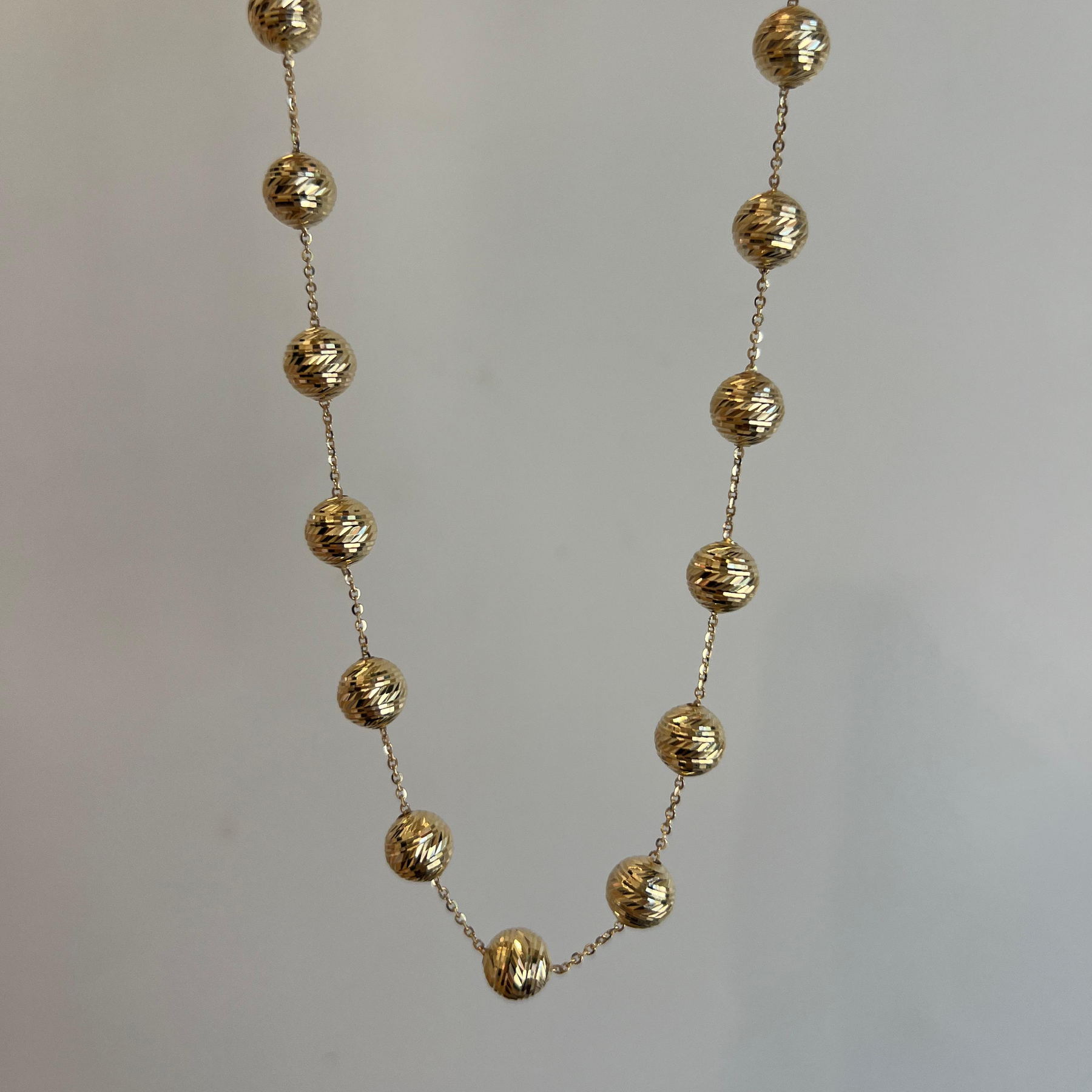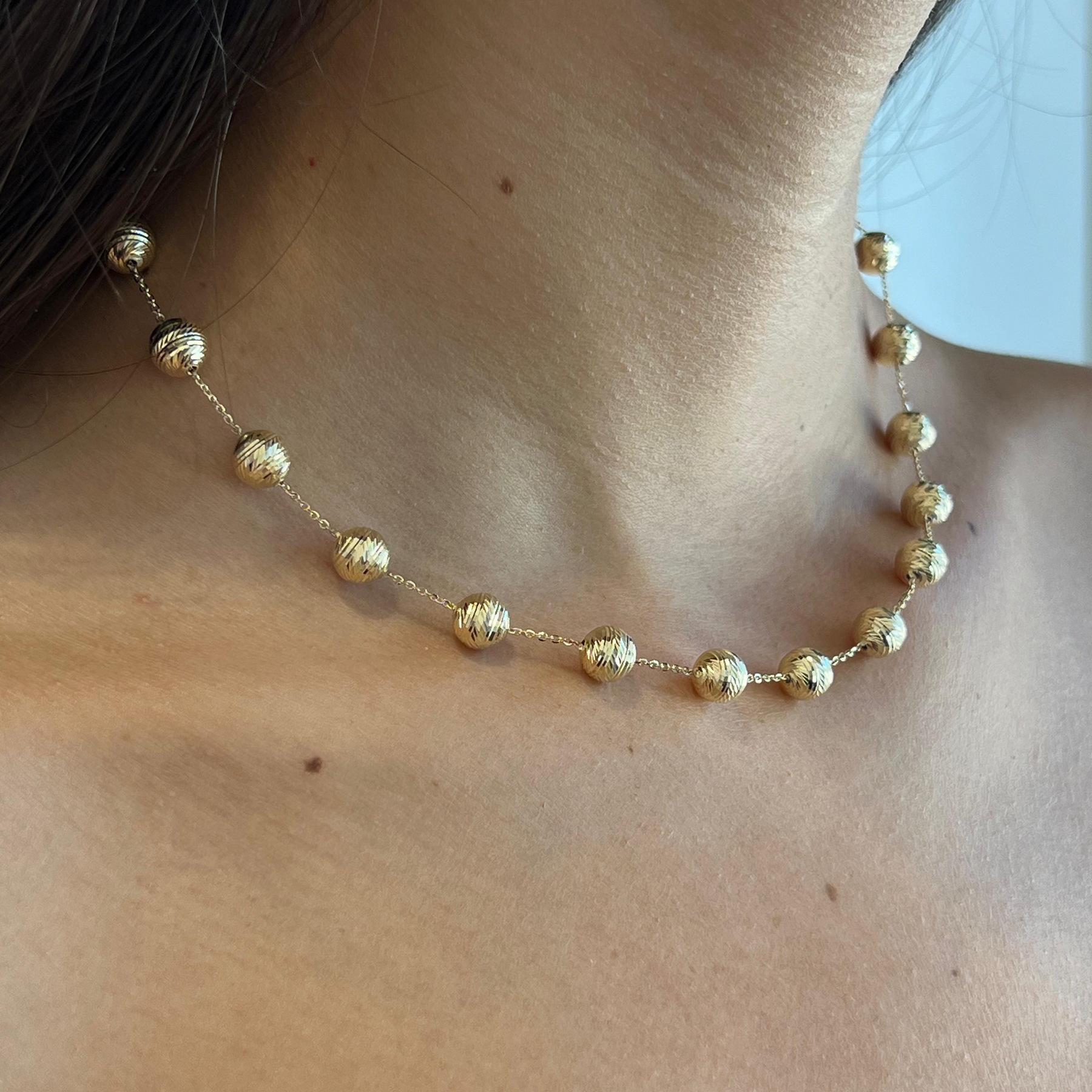 שרשרת חוליות מזהב 14 קראט עם כדוריות מזהב.