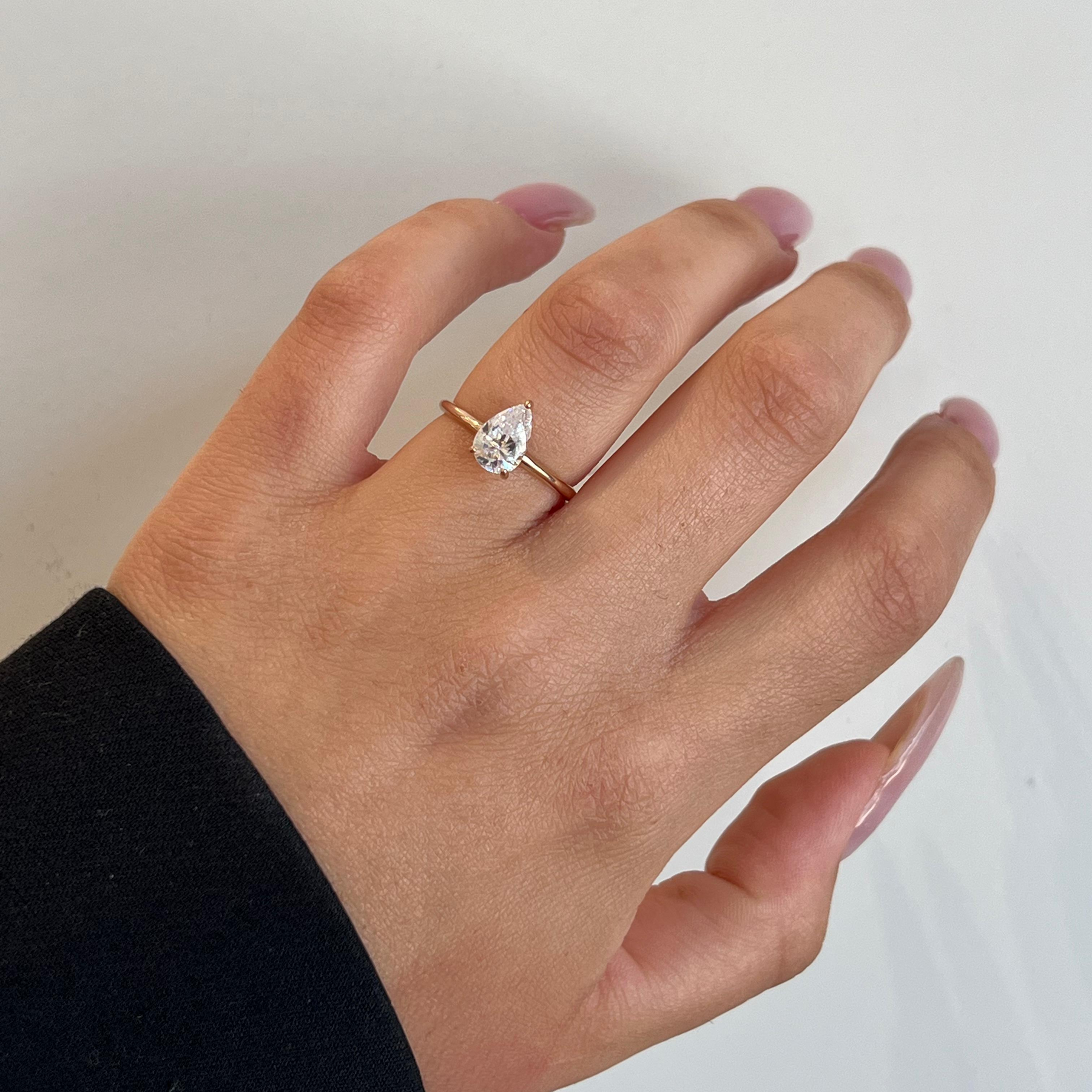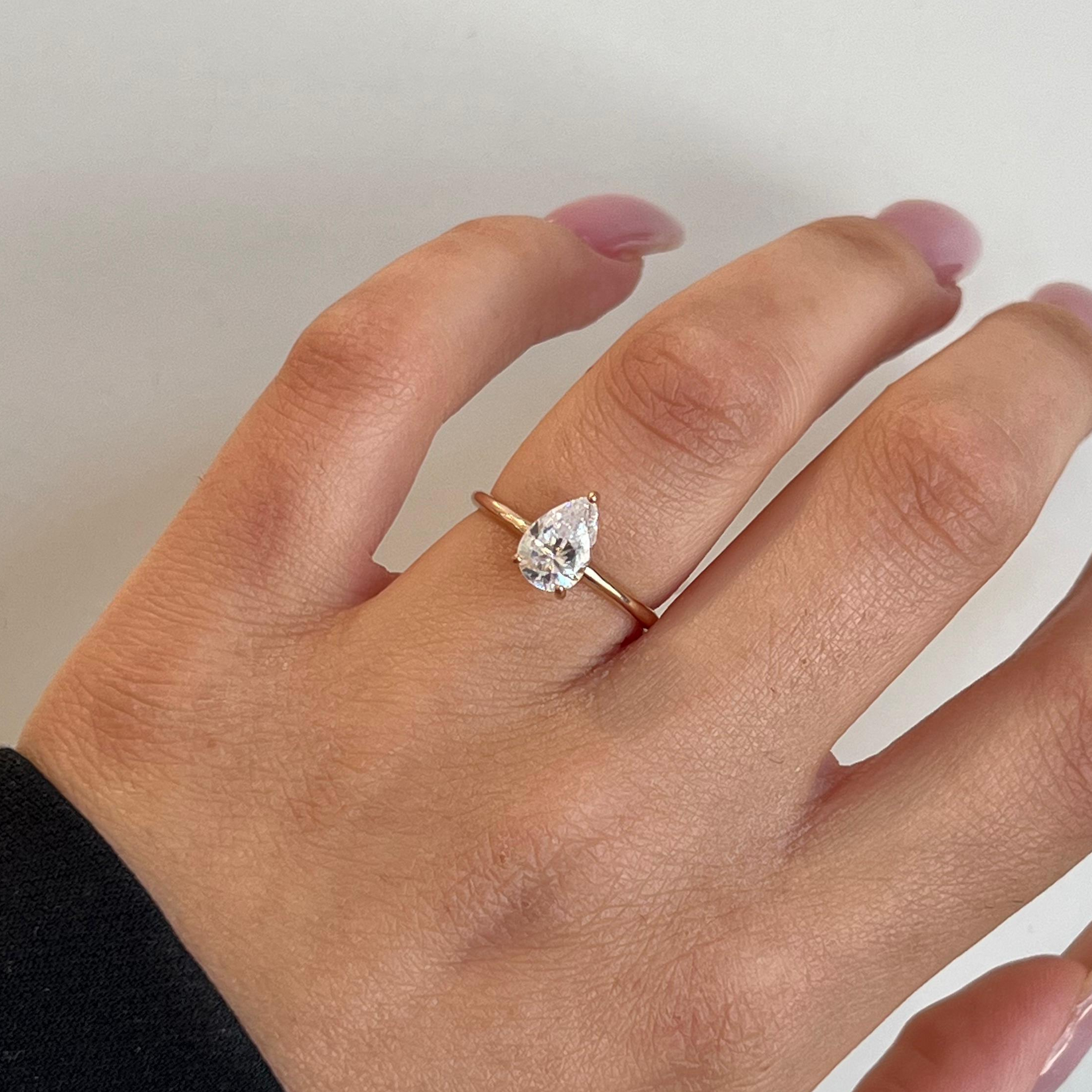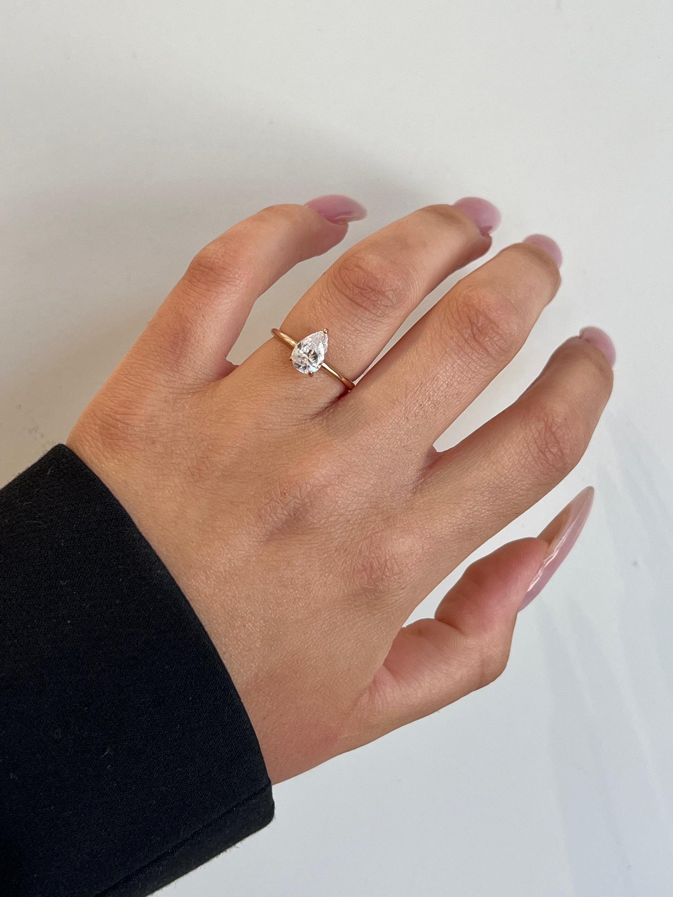 טבעת מזהב 14 קראט עם זרקון בצורת טיפה.