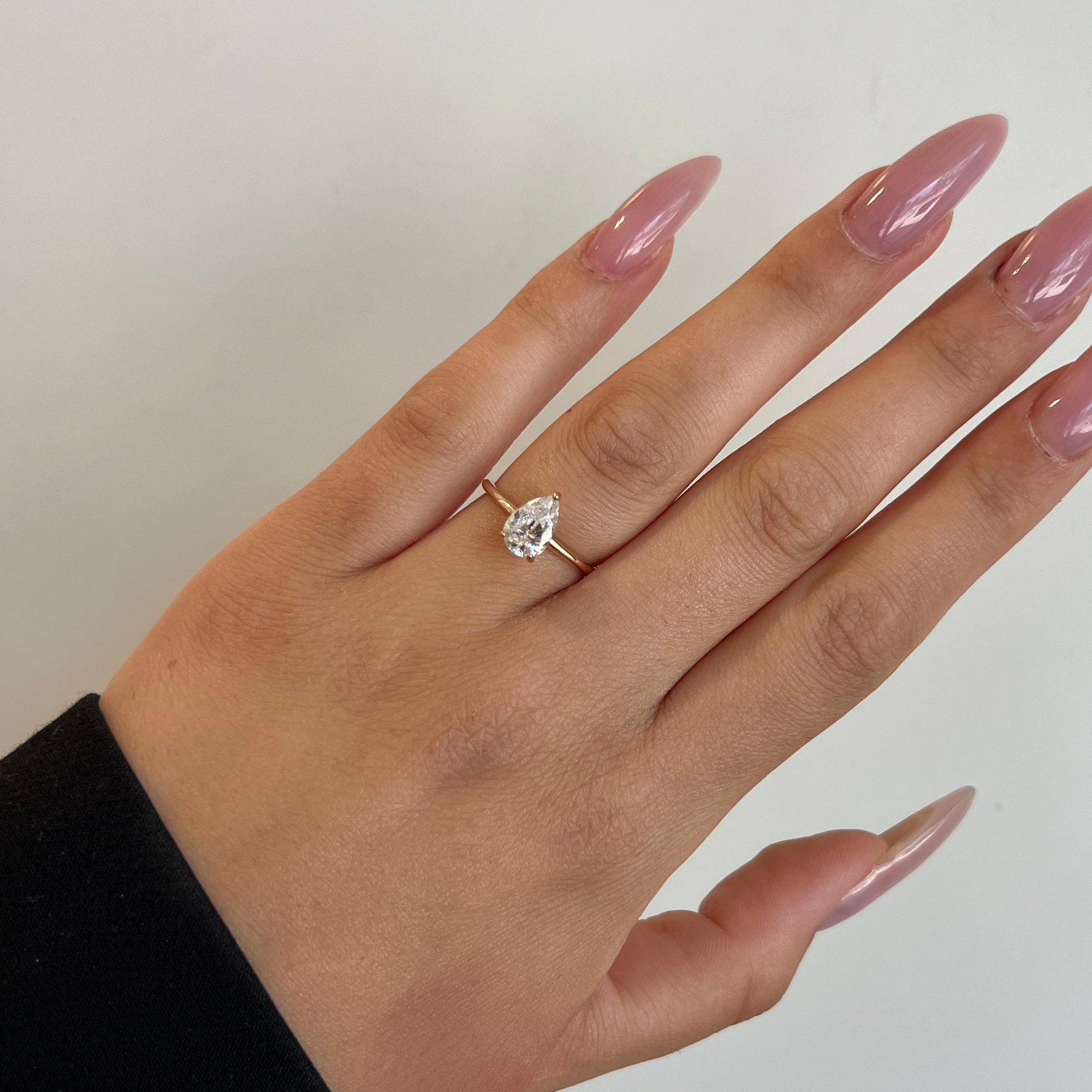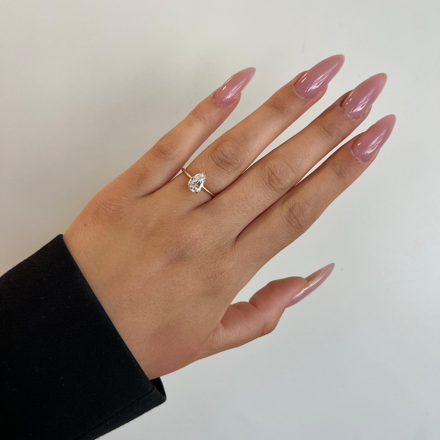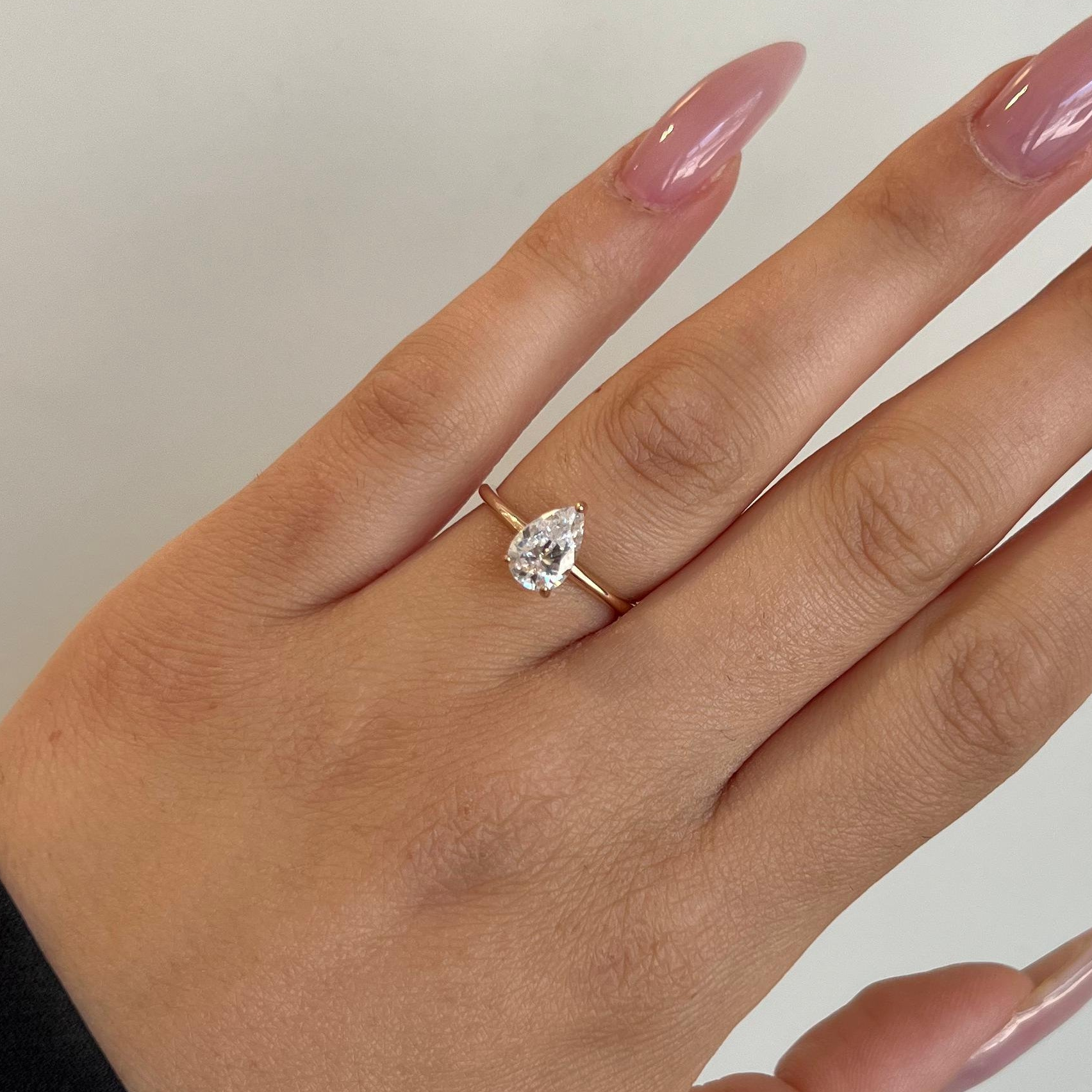 טבעת מזהב 14 קראט עם זרקון בצורת טיפה.