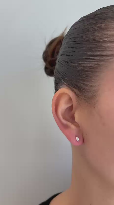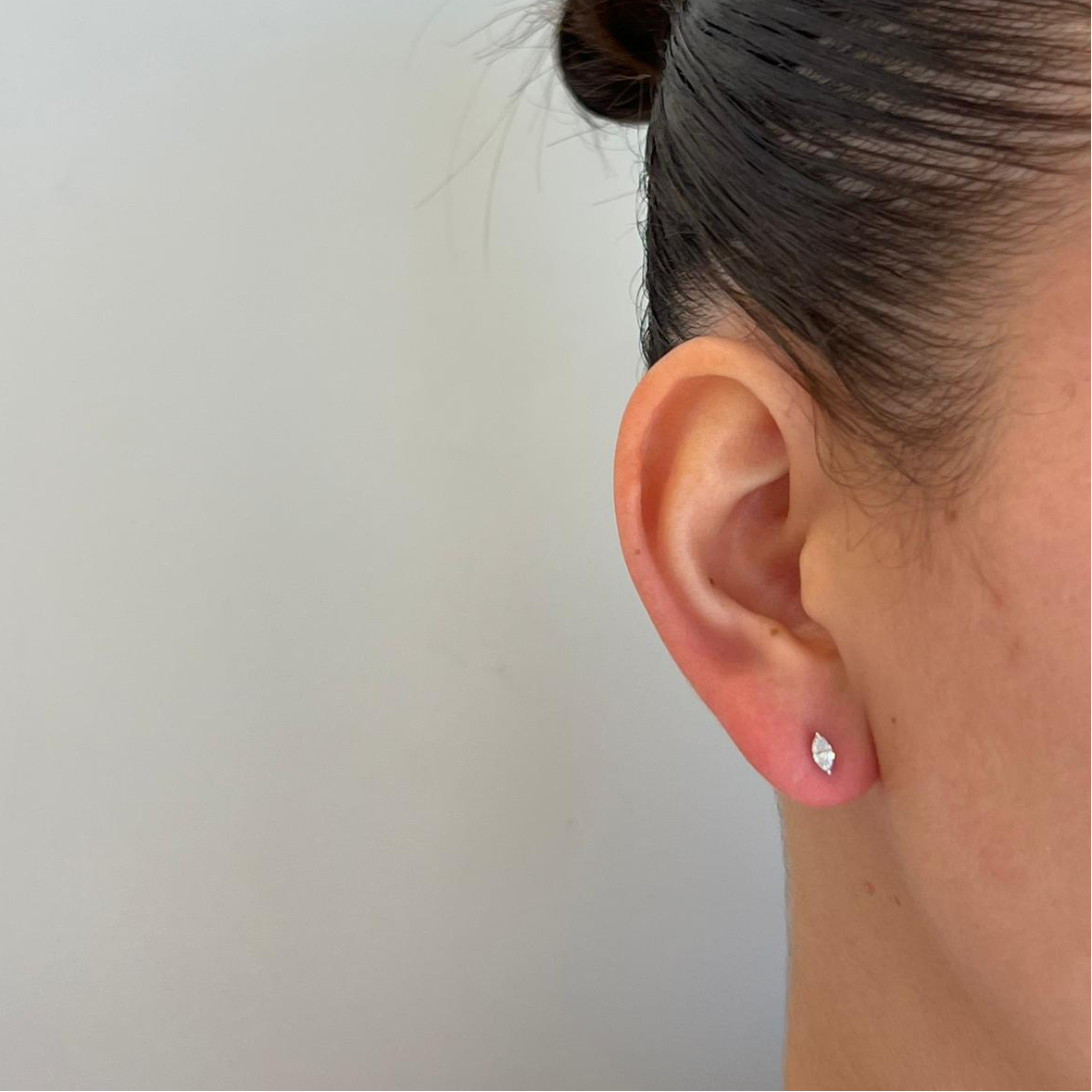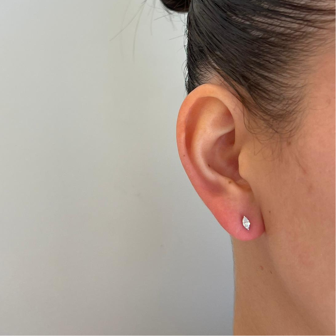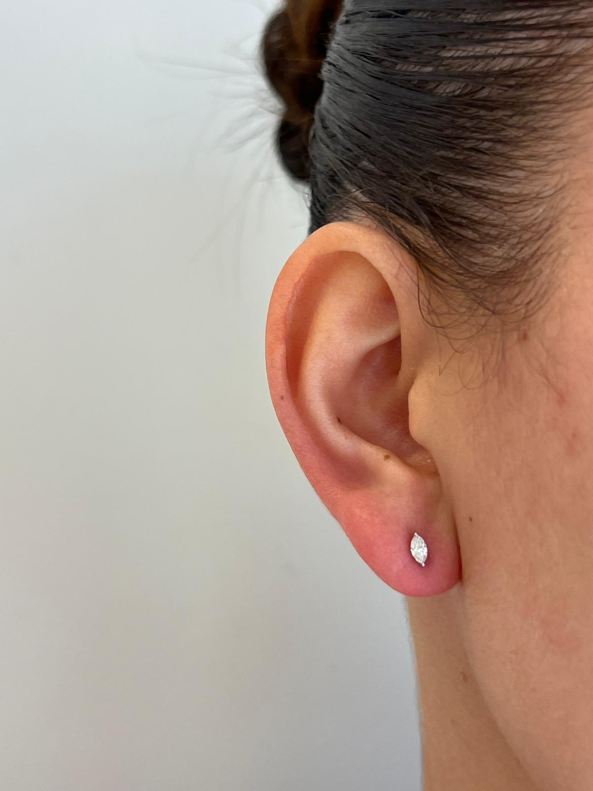 עגילי זהב 14 קרט משובצים יהלומים בצורת מרקיזה לפי המפרט שלהלן: