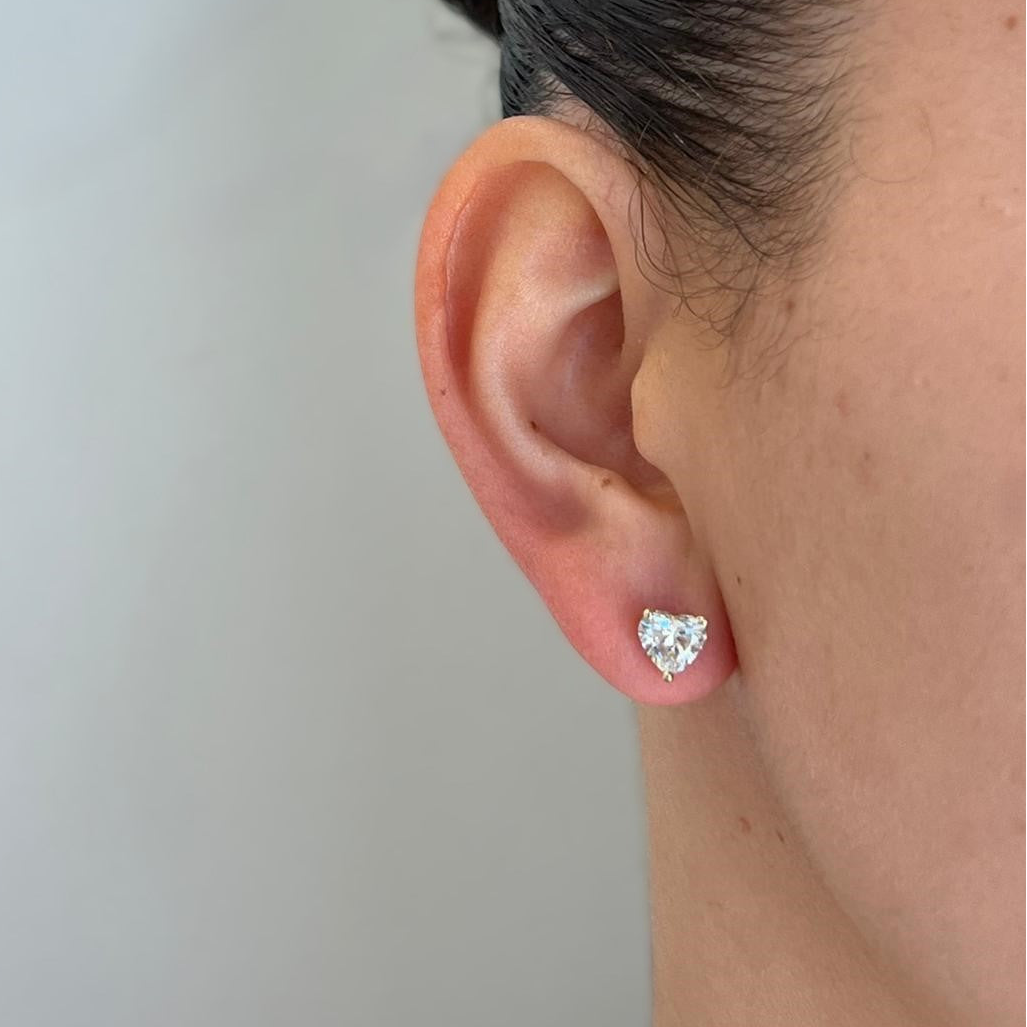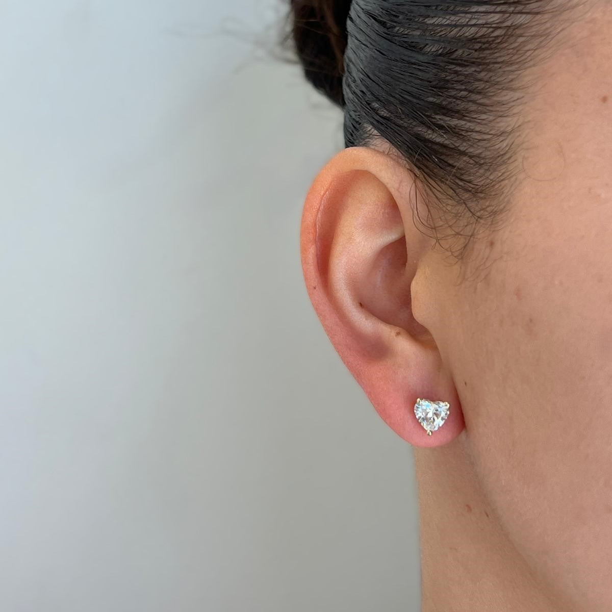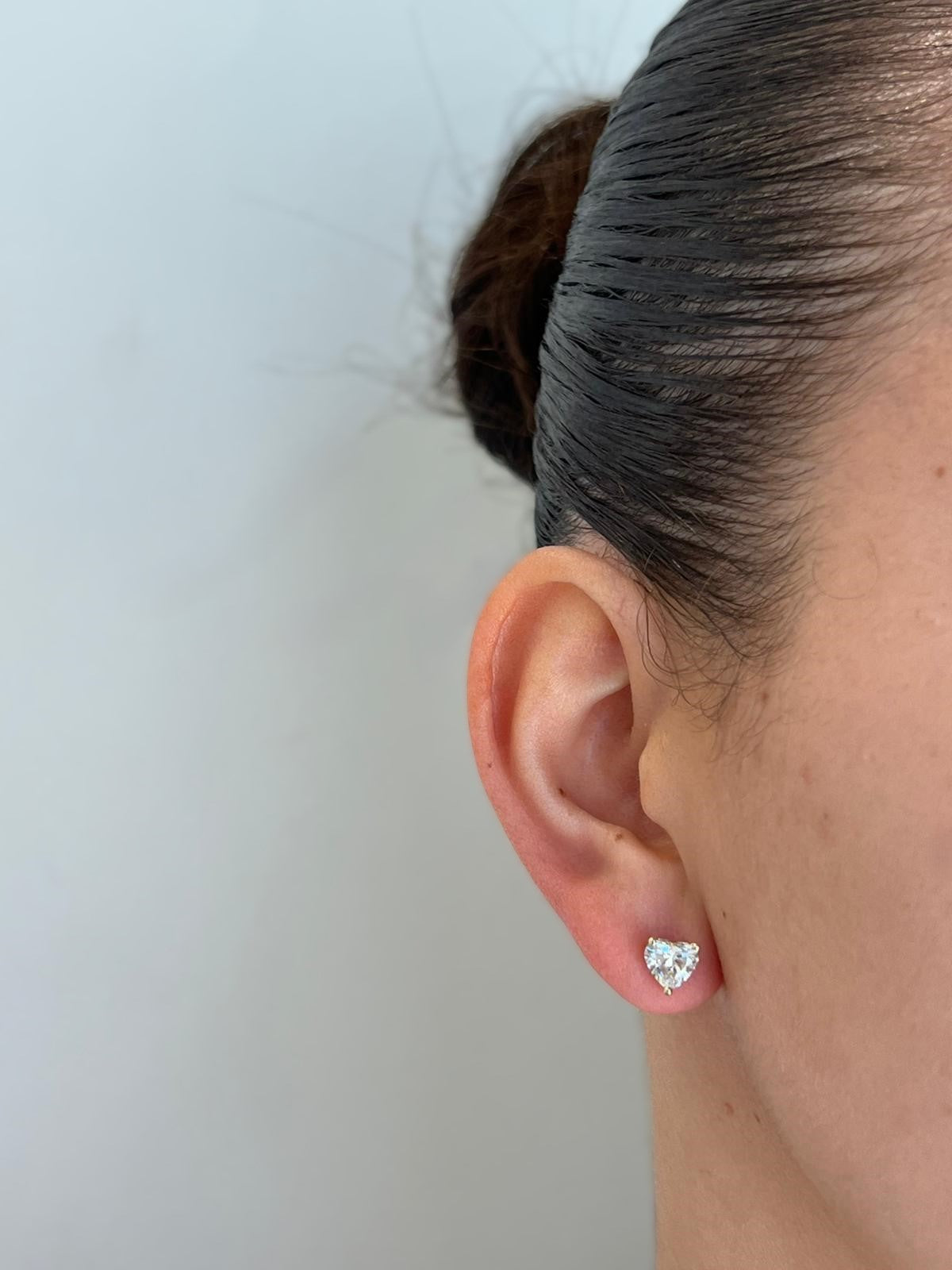 עגילי זהב 14 קרט משובצים יהלומים בצורת לב לפי המפרט שלהלן: