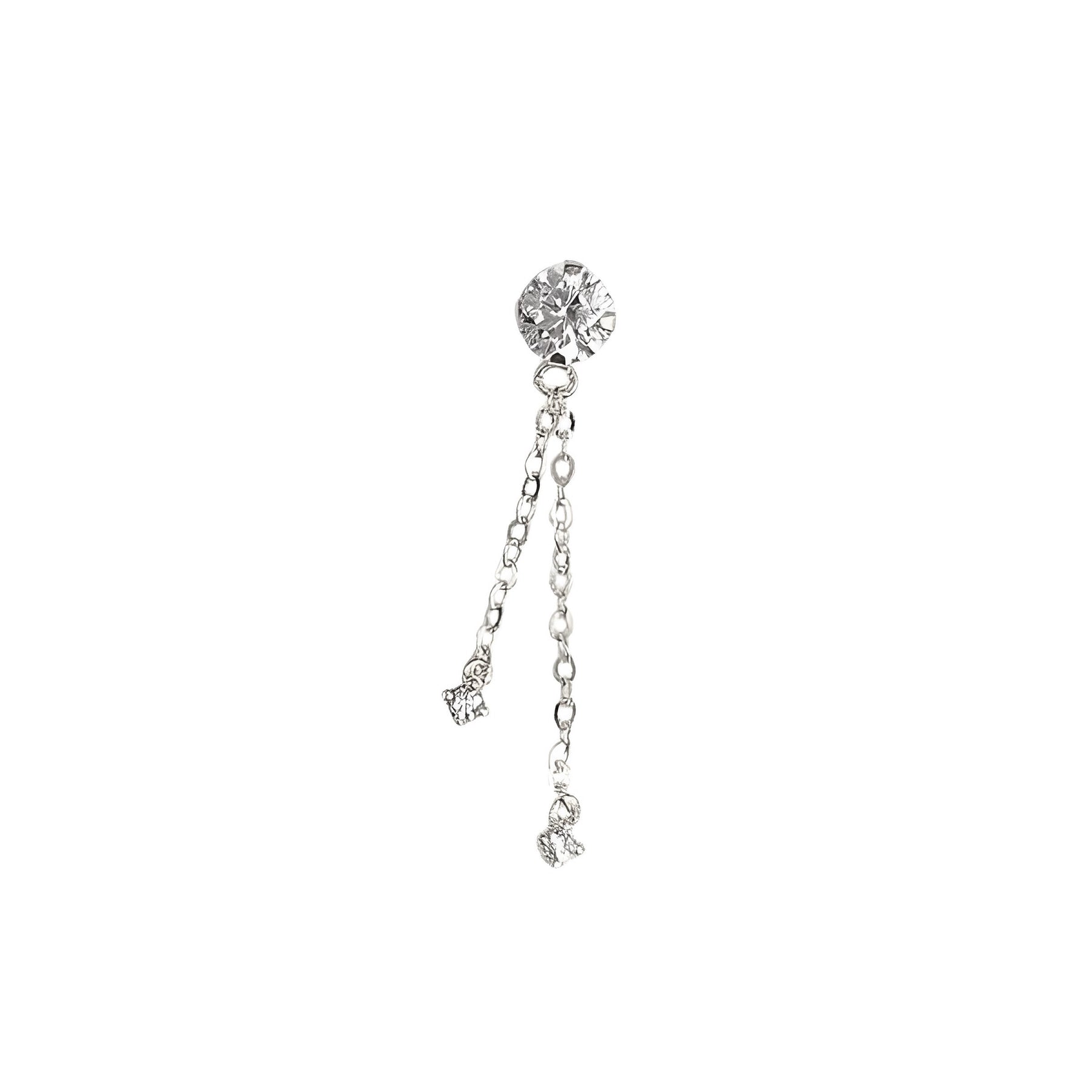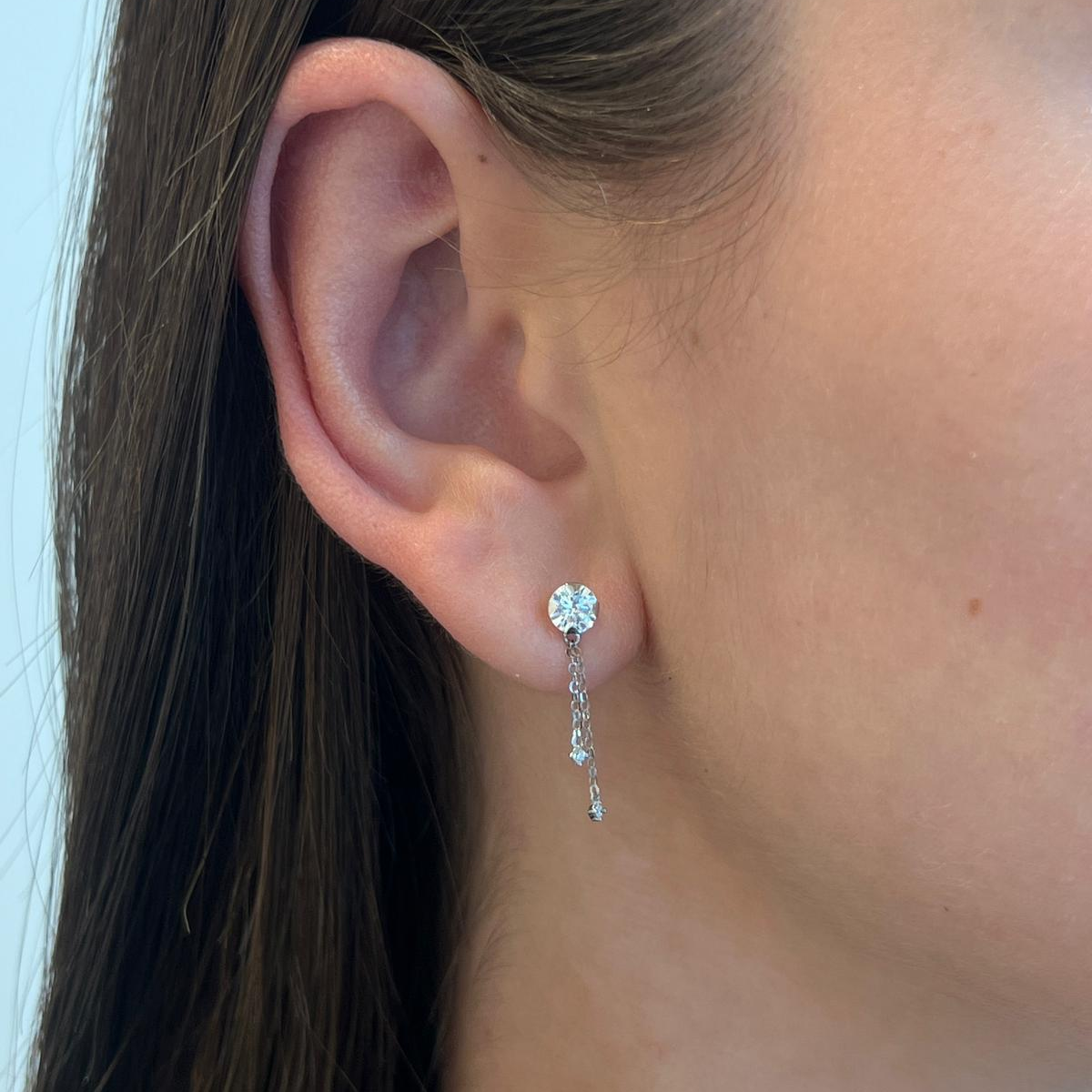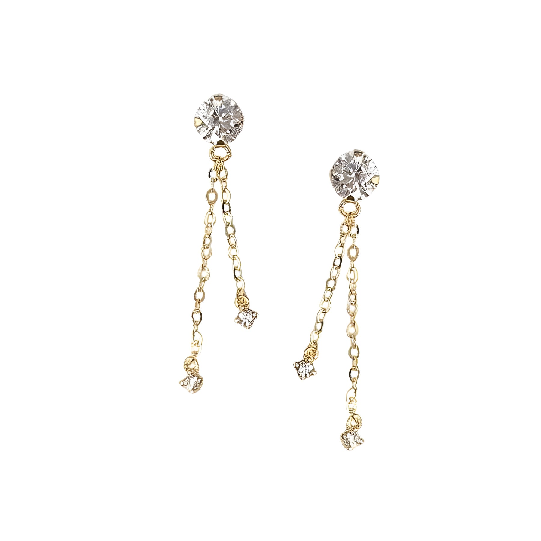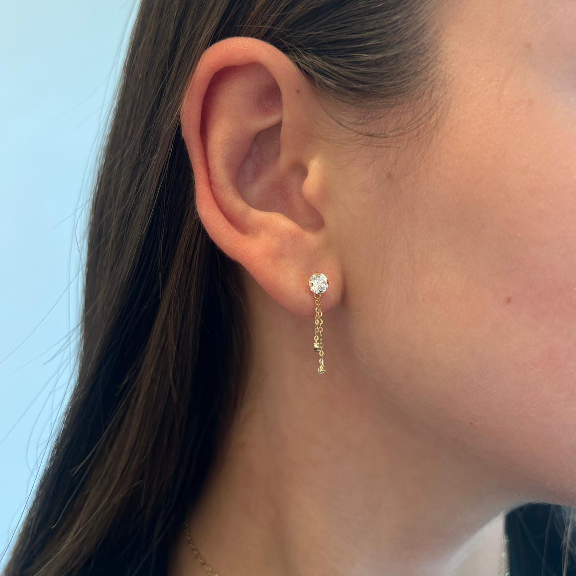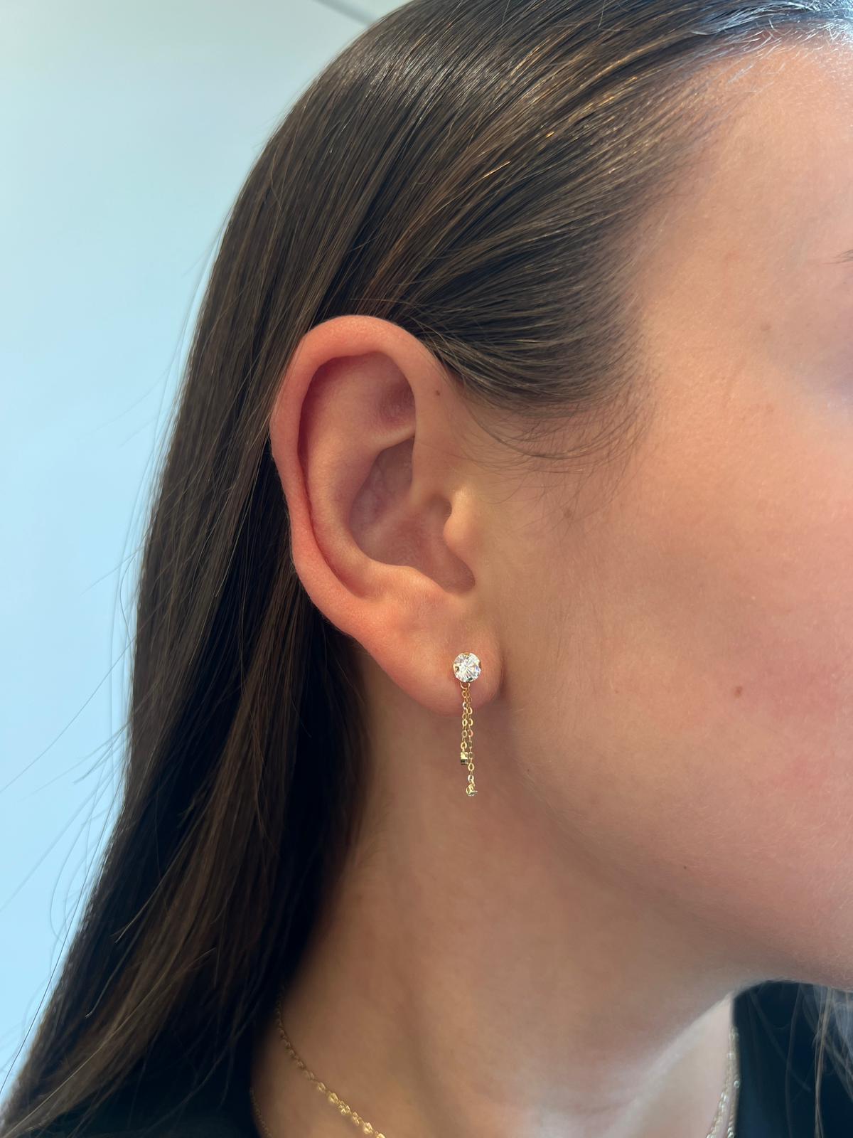 עגיל זהב זרקון 5 מ"מ עם שרשראות נופלות