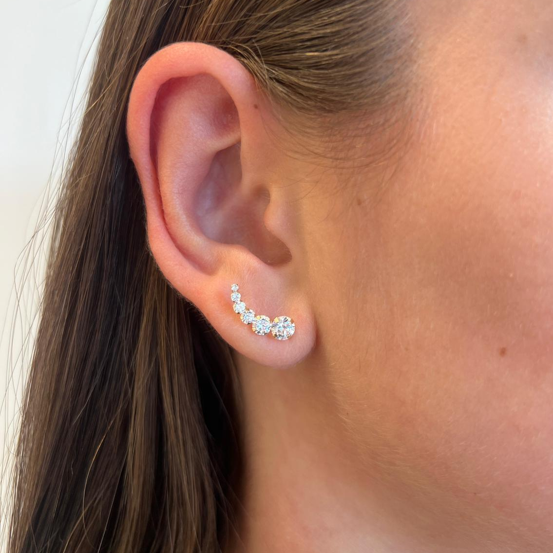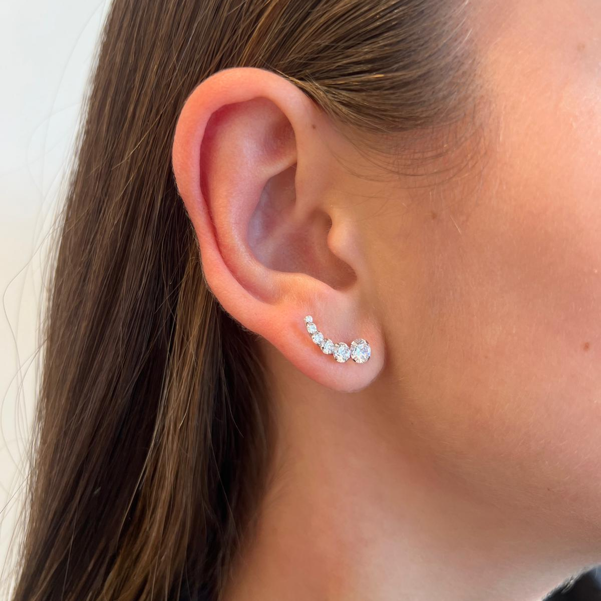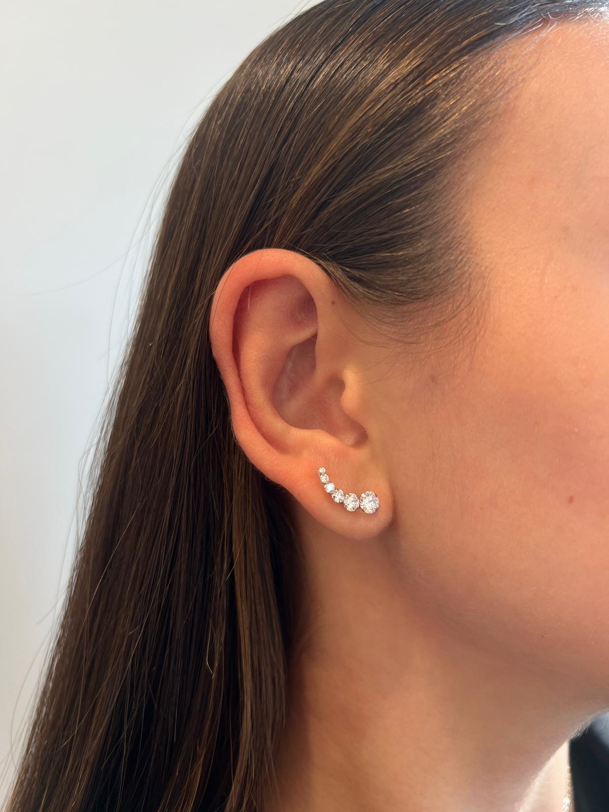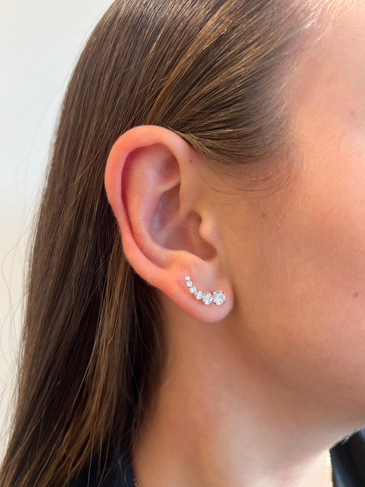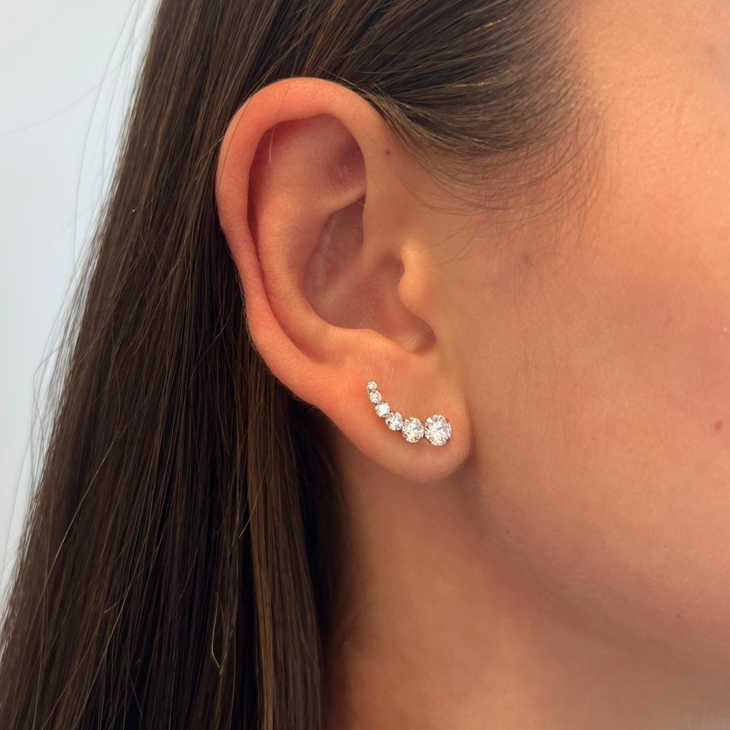 עגיל מטפס מזהב לבן 14 קראט משובץ 6 זרקונים בגדלים שונים.