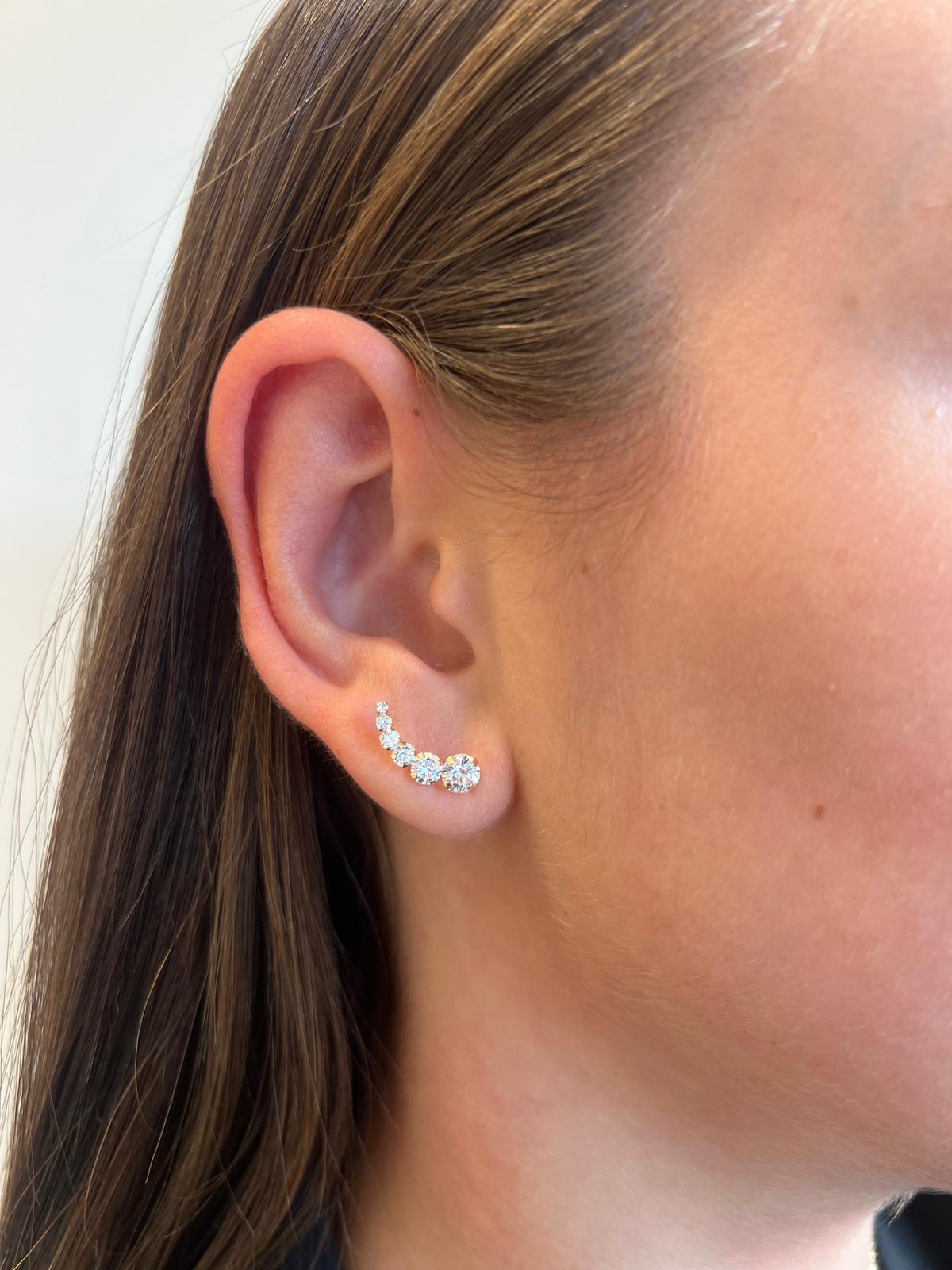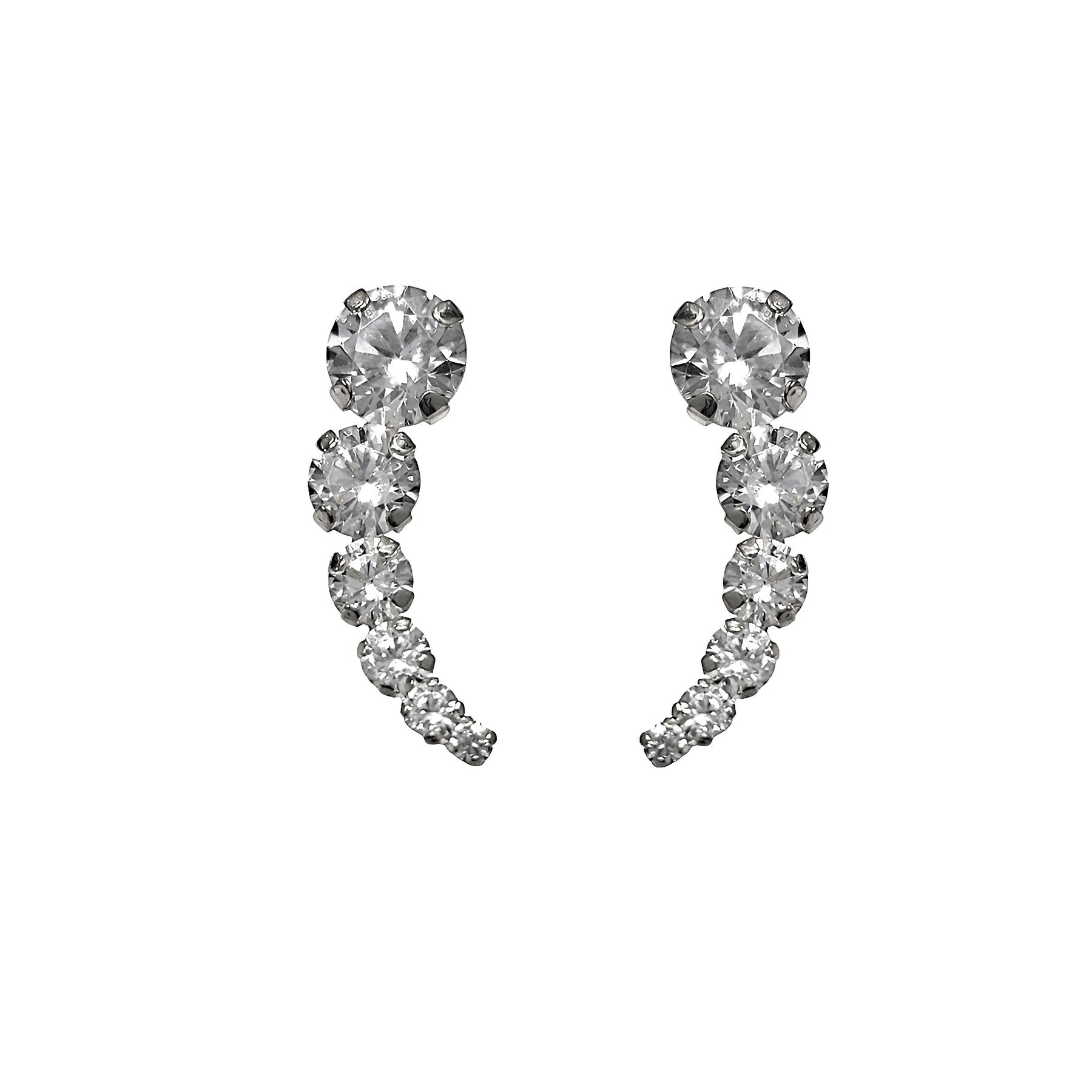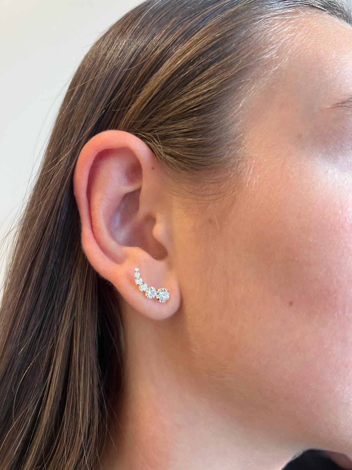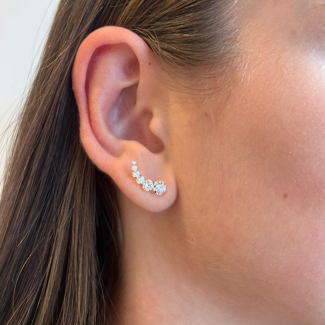 עגיל מטפס מזהב לבן 14 קראט משובץ 6 זרקונים בגדלים שונים.