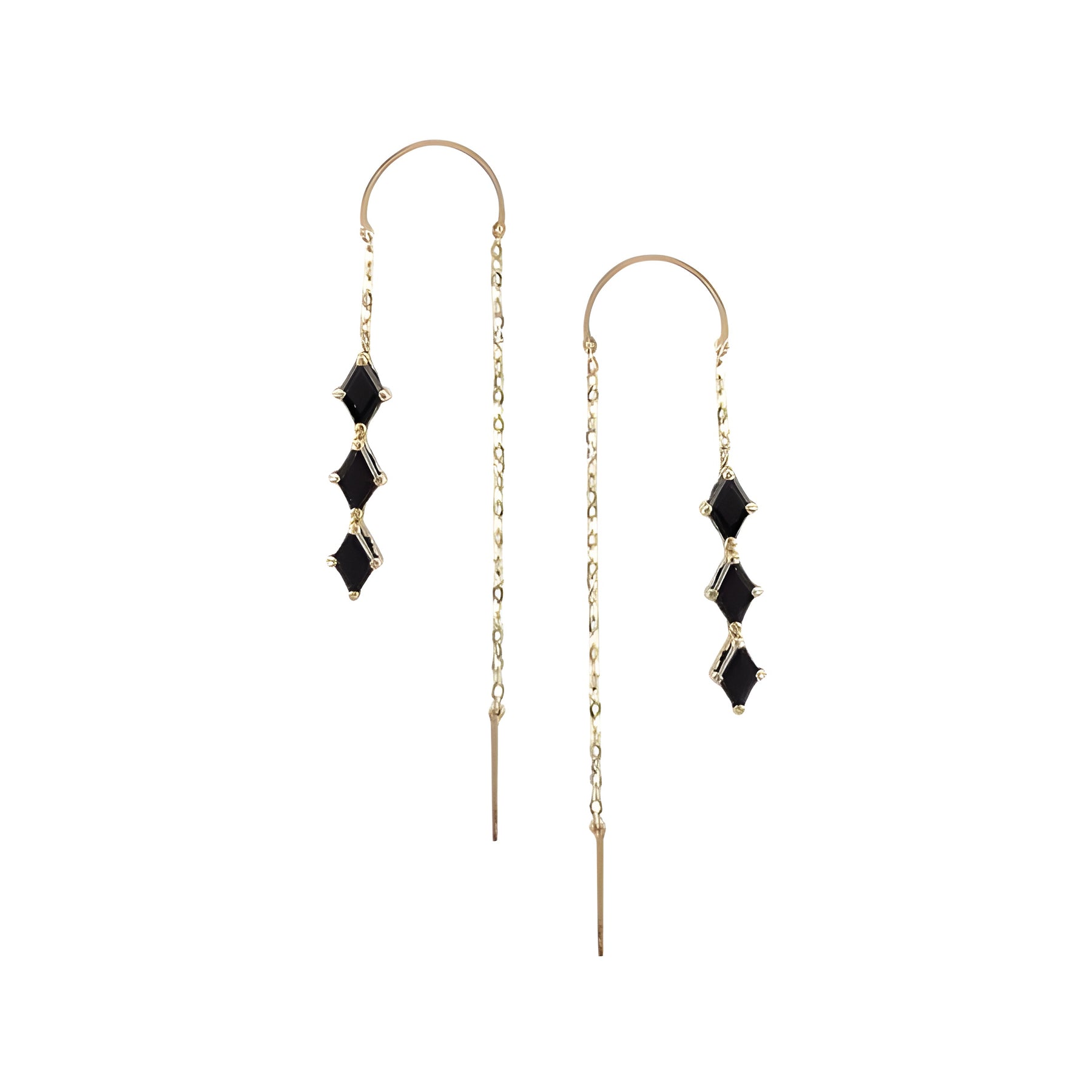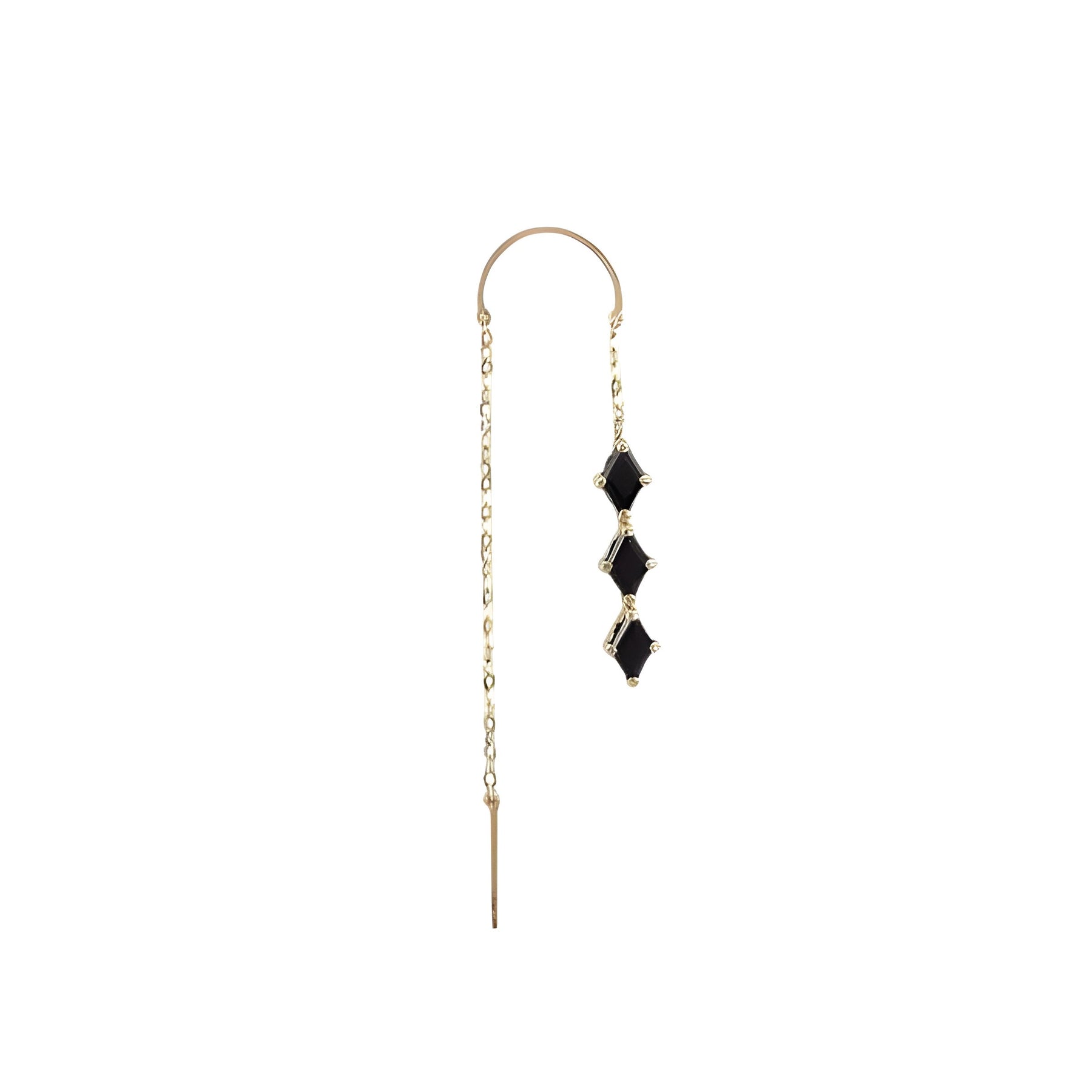 עגיל שרשרת זהב עם זרקונים שחורים בצורת מעוין