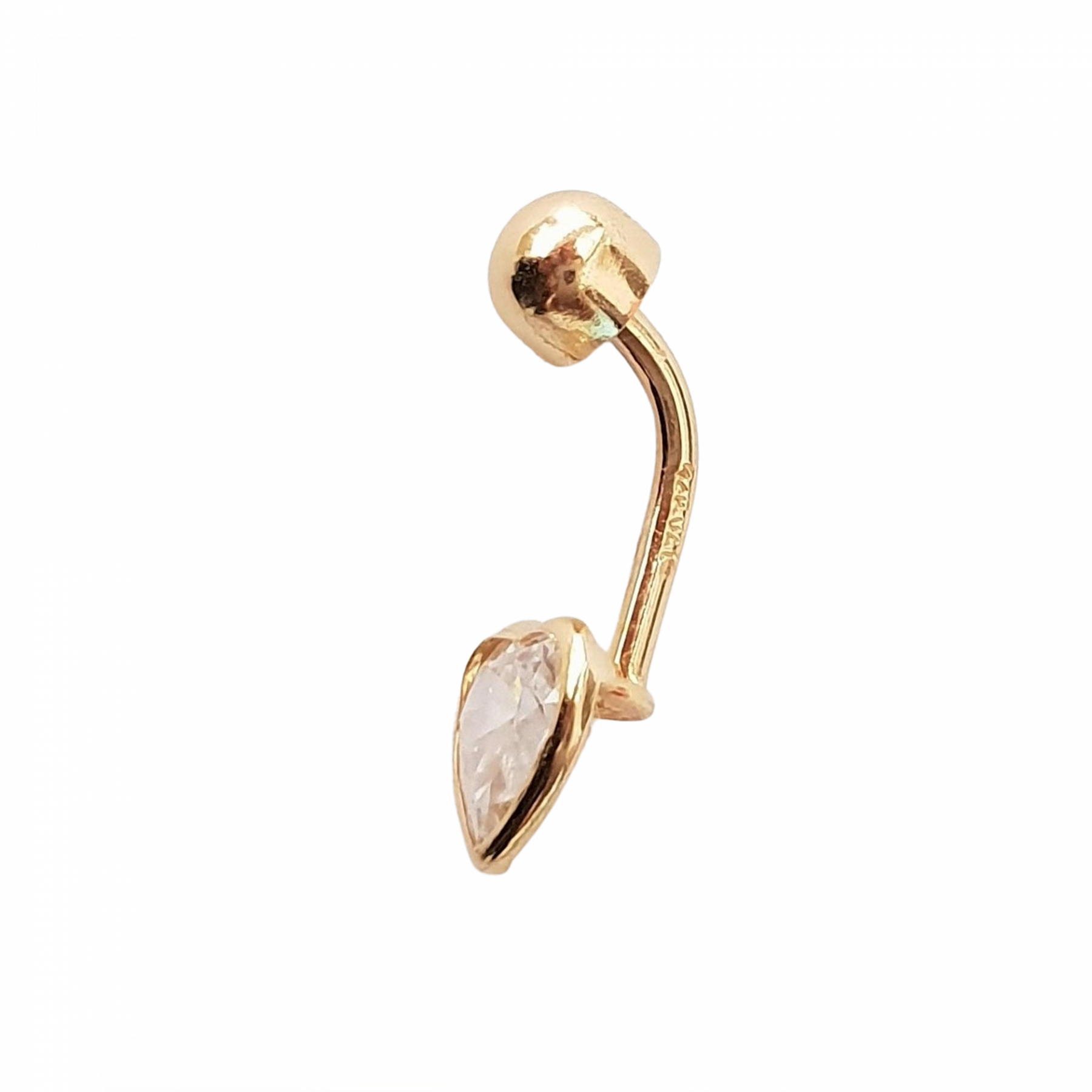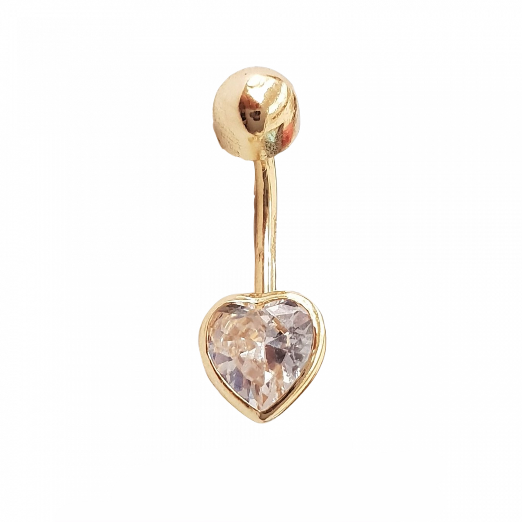 עגיל לטבור מזהב 14 קרט בשיבוץ זרקון בצורת לב