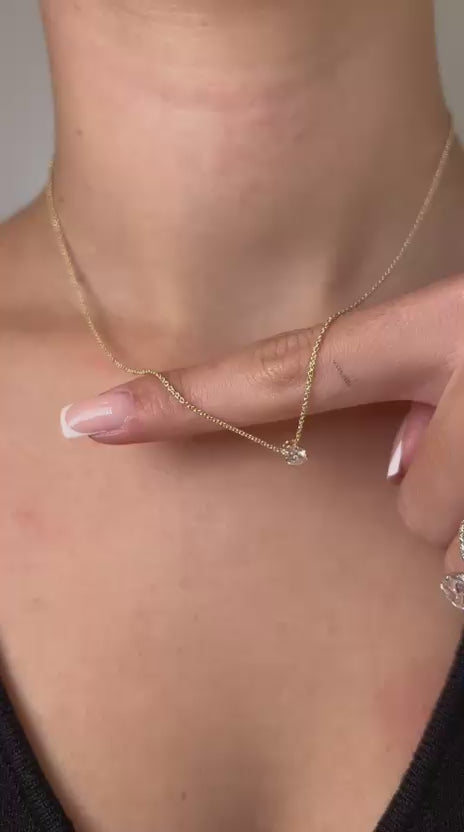 השרשרת מסוג רולו (חוליות) מולחמת לתליון משני הצדדים- שניהם עשויים מזהב 14 קרט.