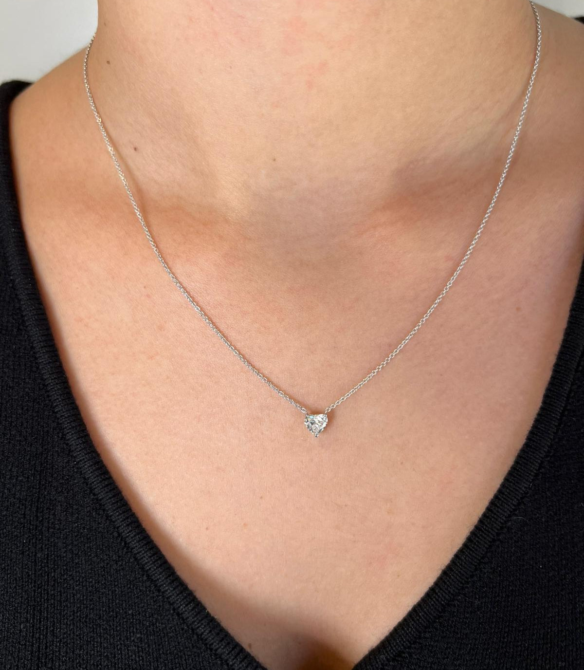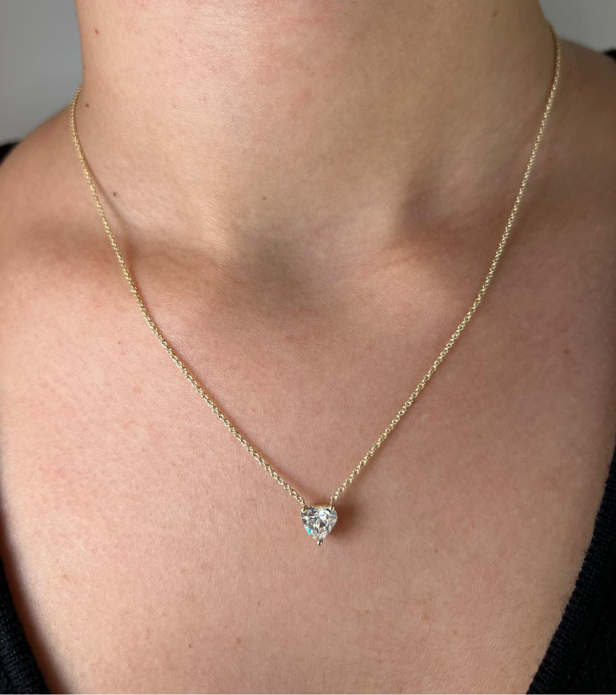 שרשרת זהב משובצת יהלום מעבדה 0.5 קראט בצורת לב